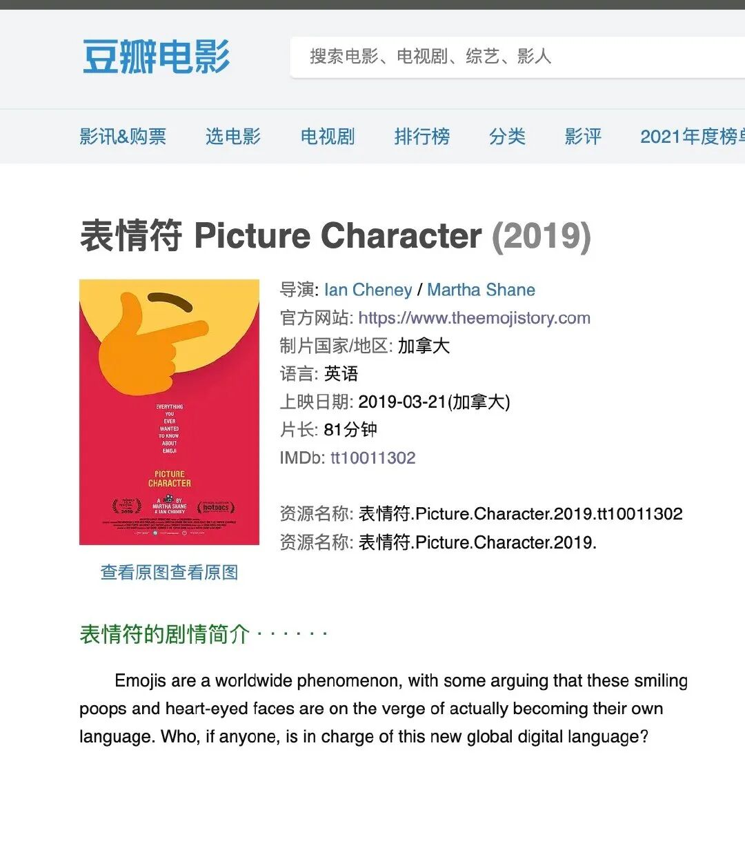 这里还有一部讲 emoji 的纪录片,感兴趣的可能找资源看一下,不过很遗憾,国内我是没找到。